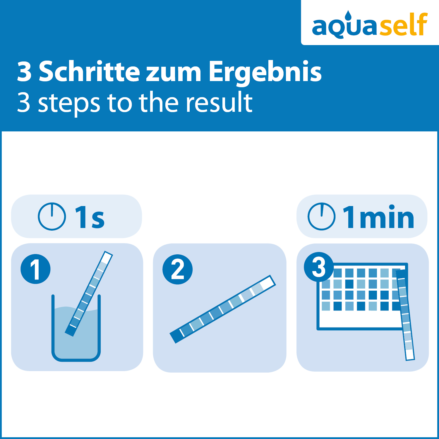 Con le pratiche strisce reattive 9 in 1 per acqua di piscine, sorgenti, pozzi e case di aquaself, puoi monitorare i valori dell'acqua più importanti in modo veloce e in totale autonomia.